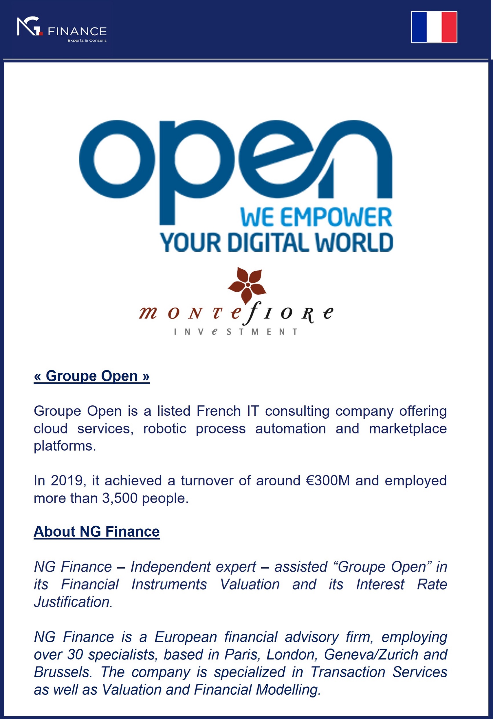 NG Finance a assisté “Groupe Open” dans sa valorisation d’instruments financiers.