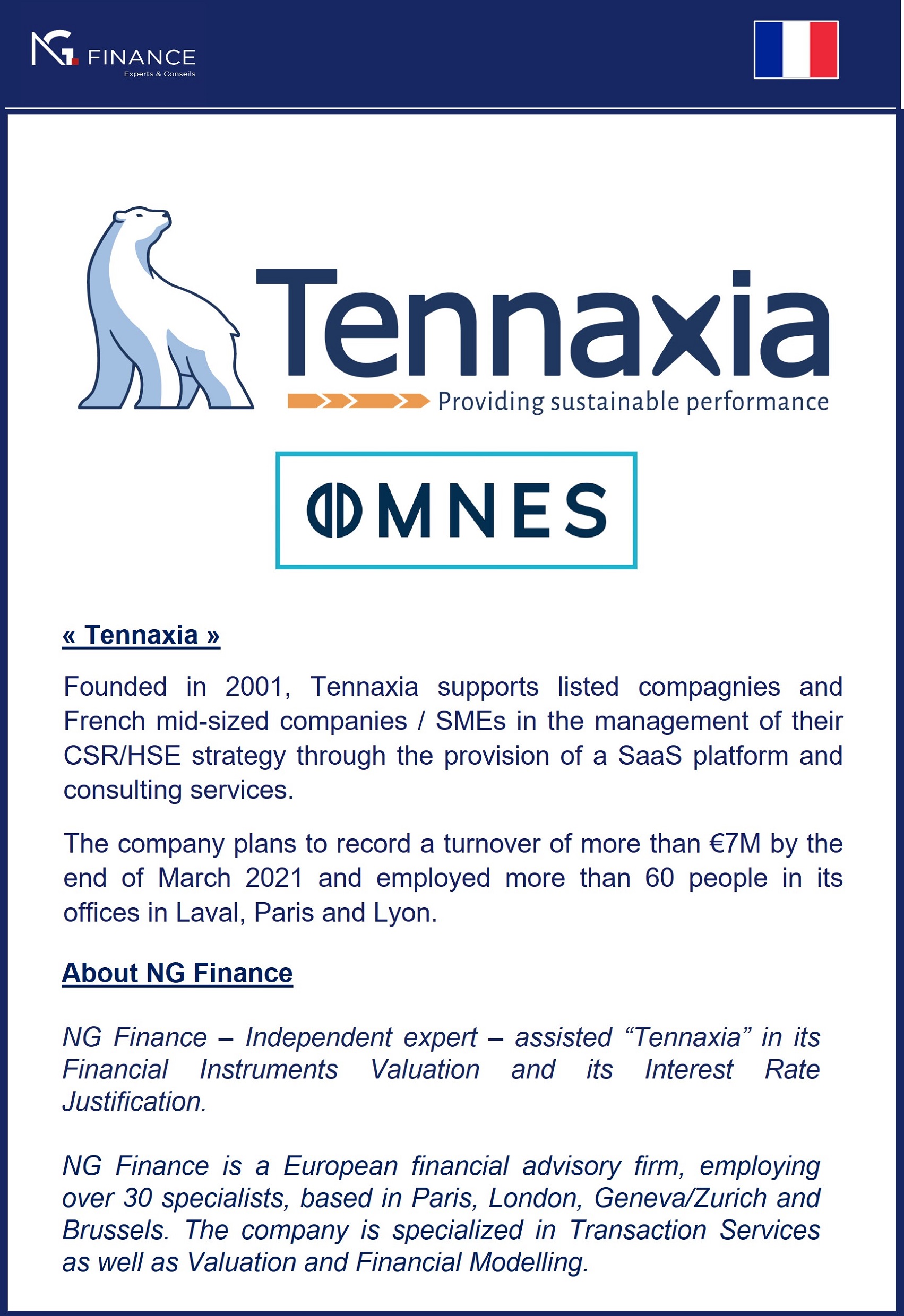 NG Finance a assisté “Tennaxia” dans sa valorisation d’instruments financiers.