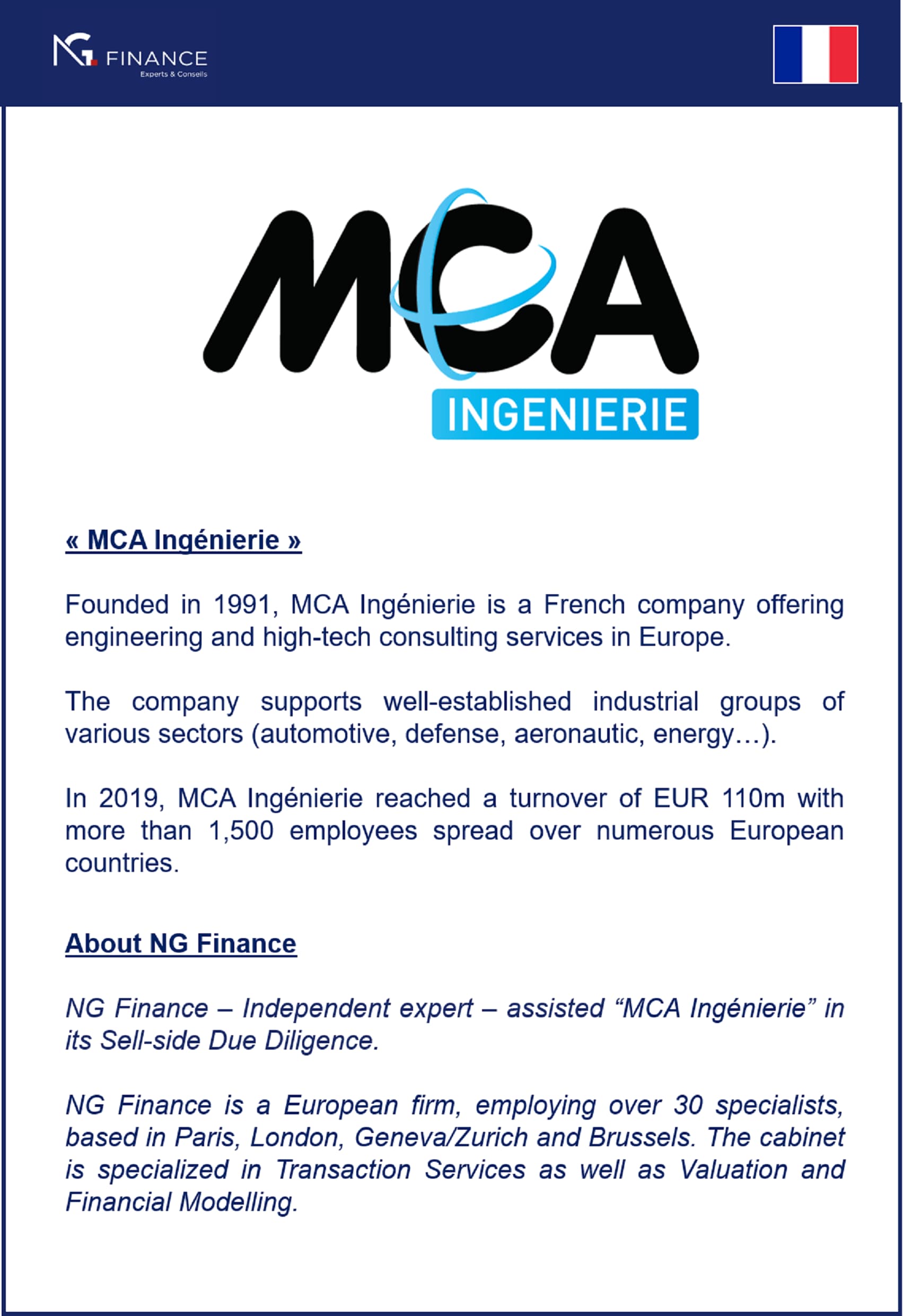 NG Finance a assisté “MCA Ingenierie” dans la Vendor Due Diligence