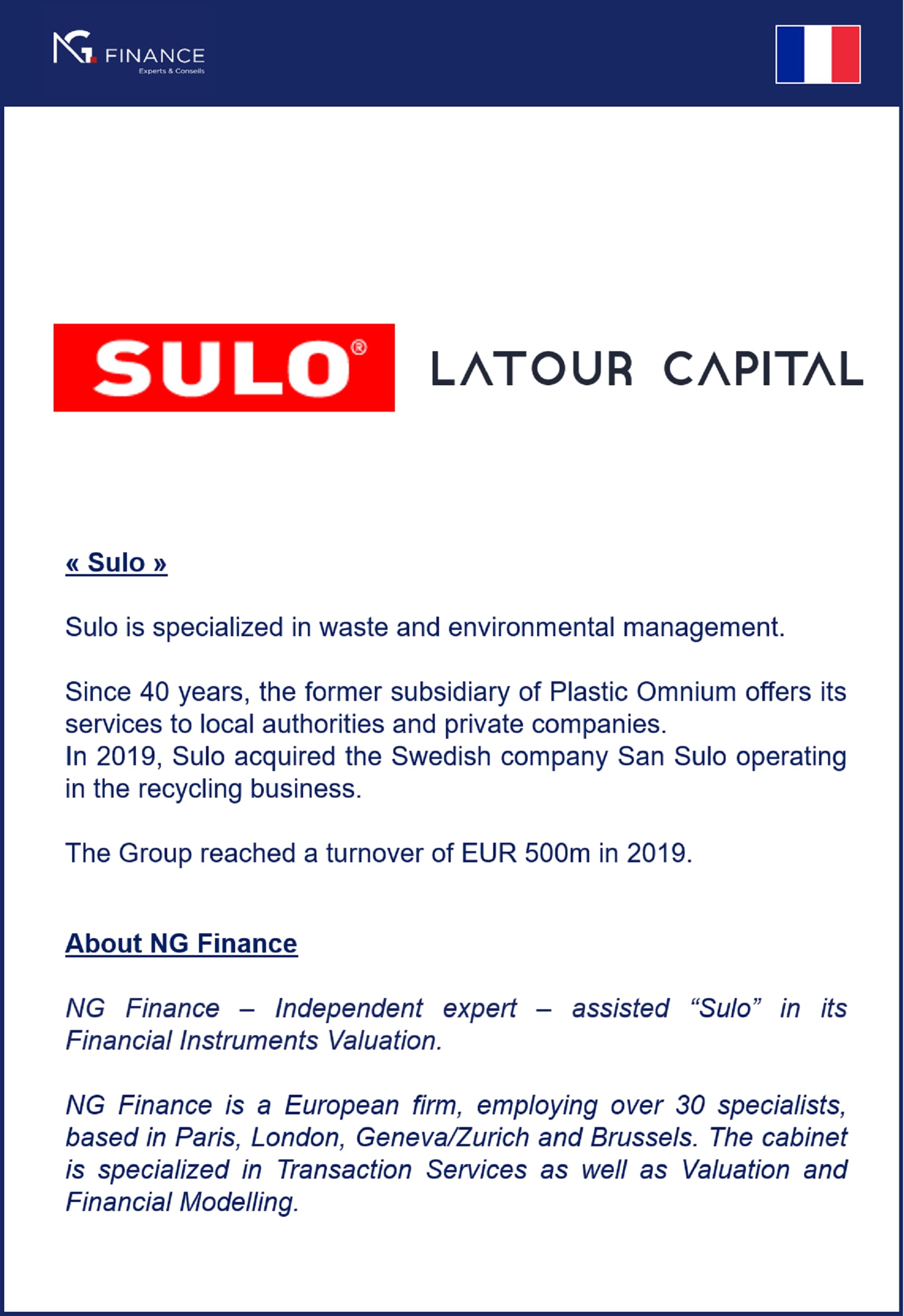NG Finance a assisté “Sulo” dans sa Valorisation d’Instruments Financiers