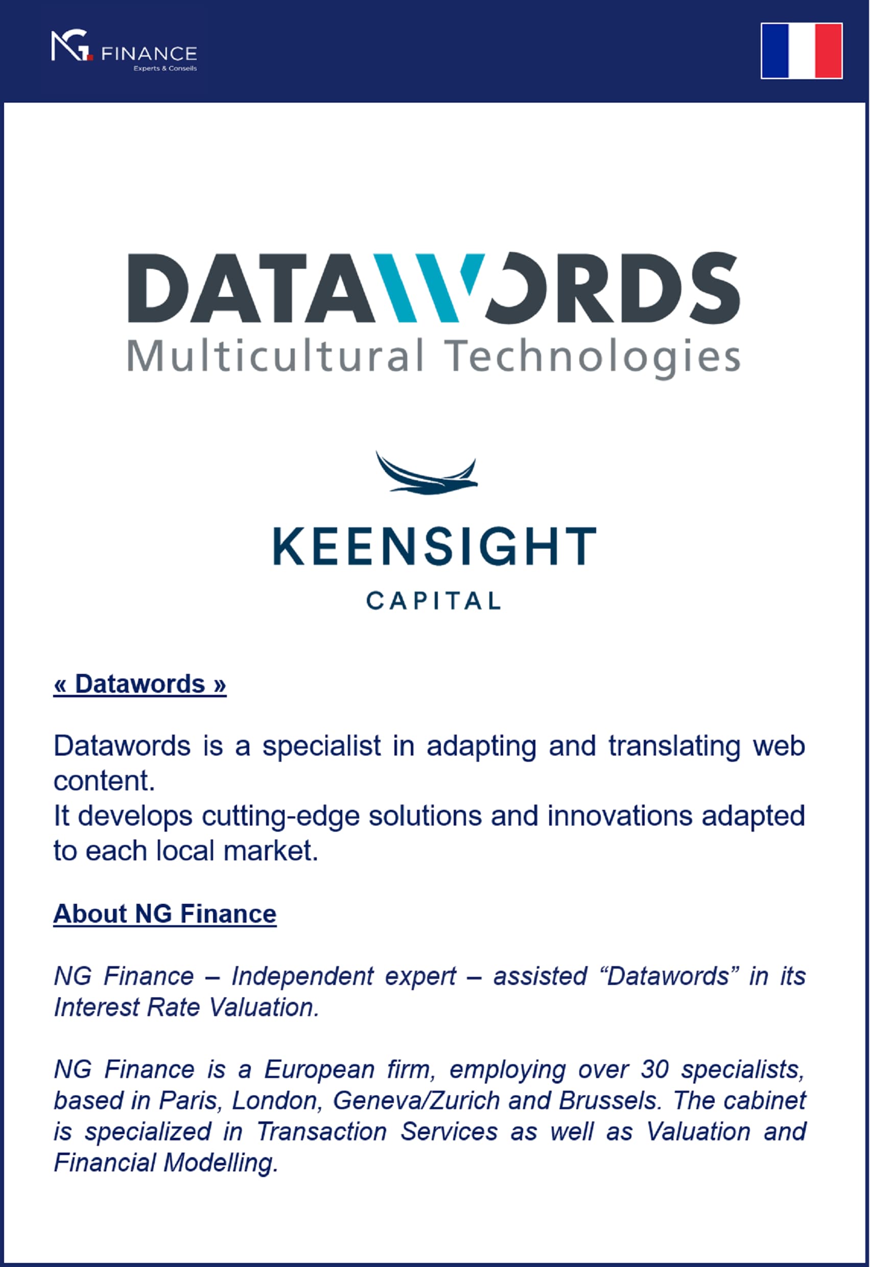 NG Finance a assisté “Datawords” dans sa justification de taux d’intérêts