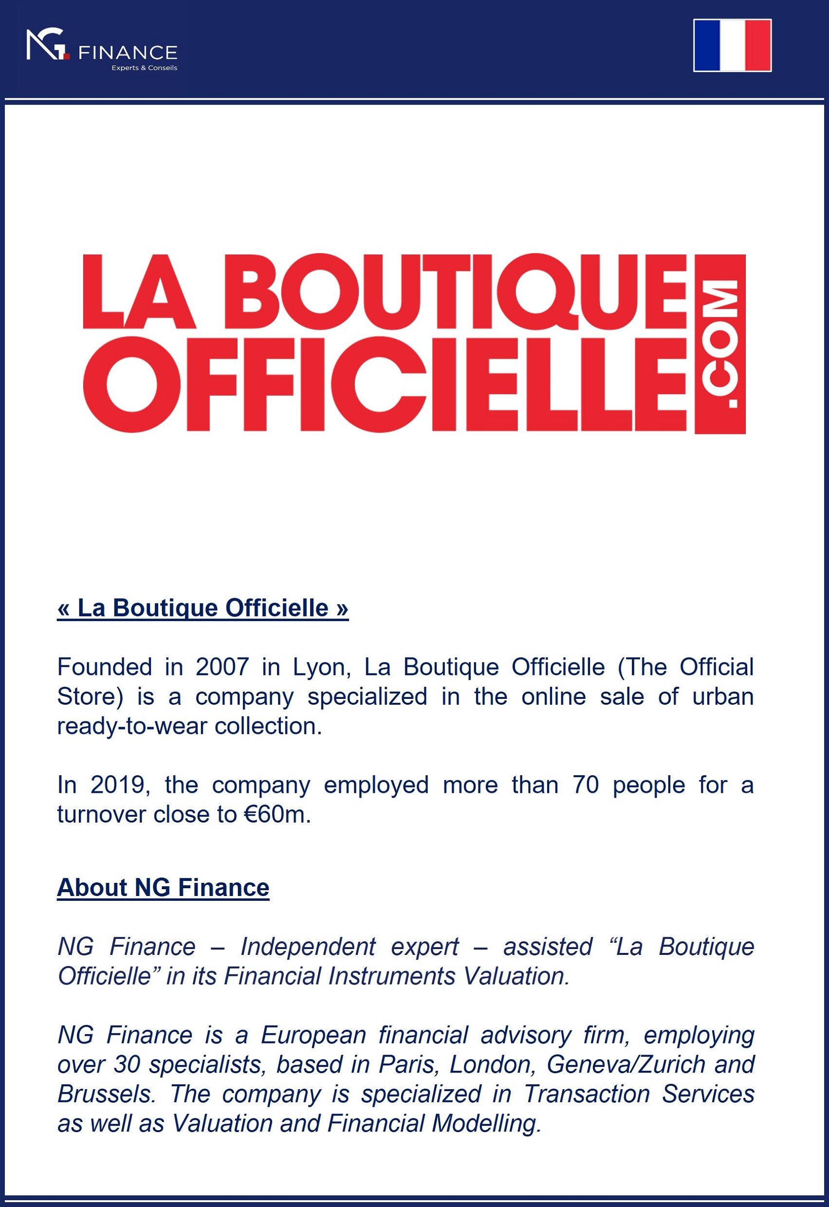 NG Finance a assisté la société “La Boutique Officielle” dans sa valorisation d’instruments financiers.