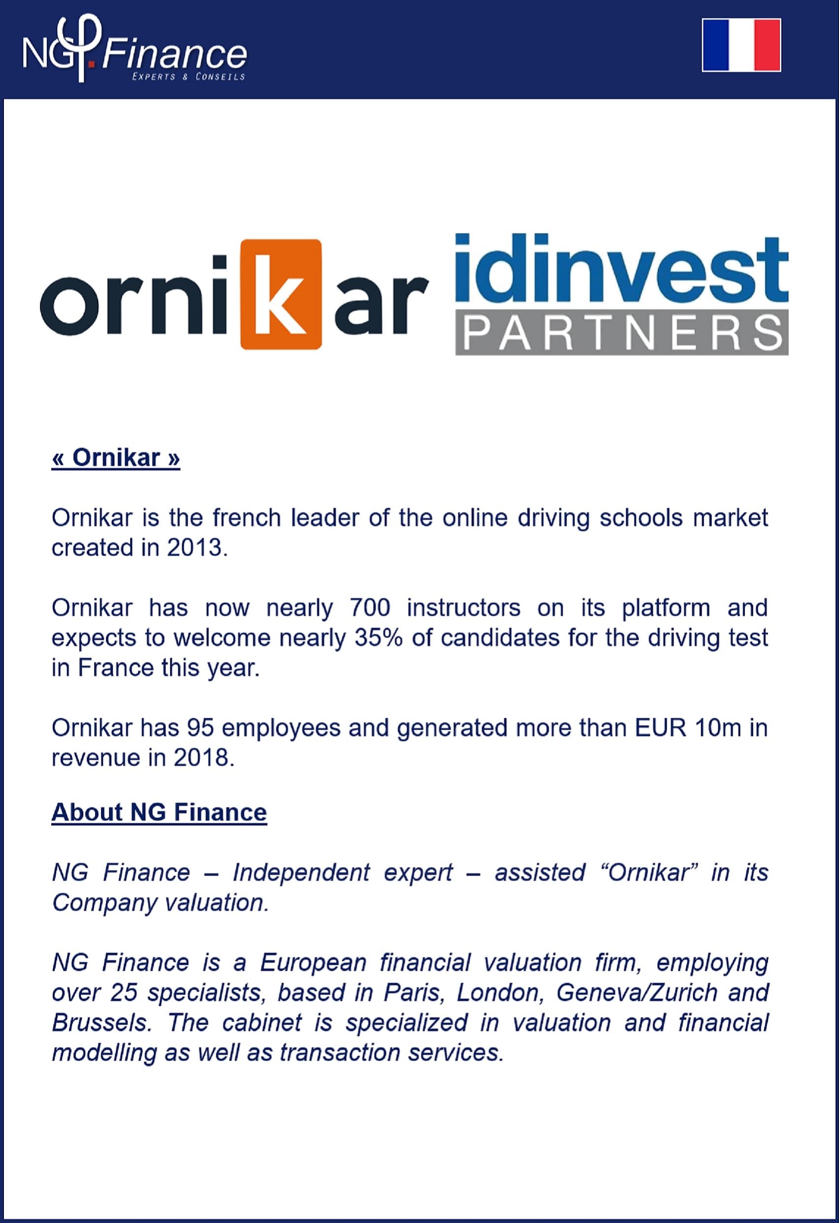 NG Finance a accompagné Ornikar dans sa valorisation d’entreprise