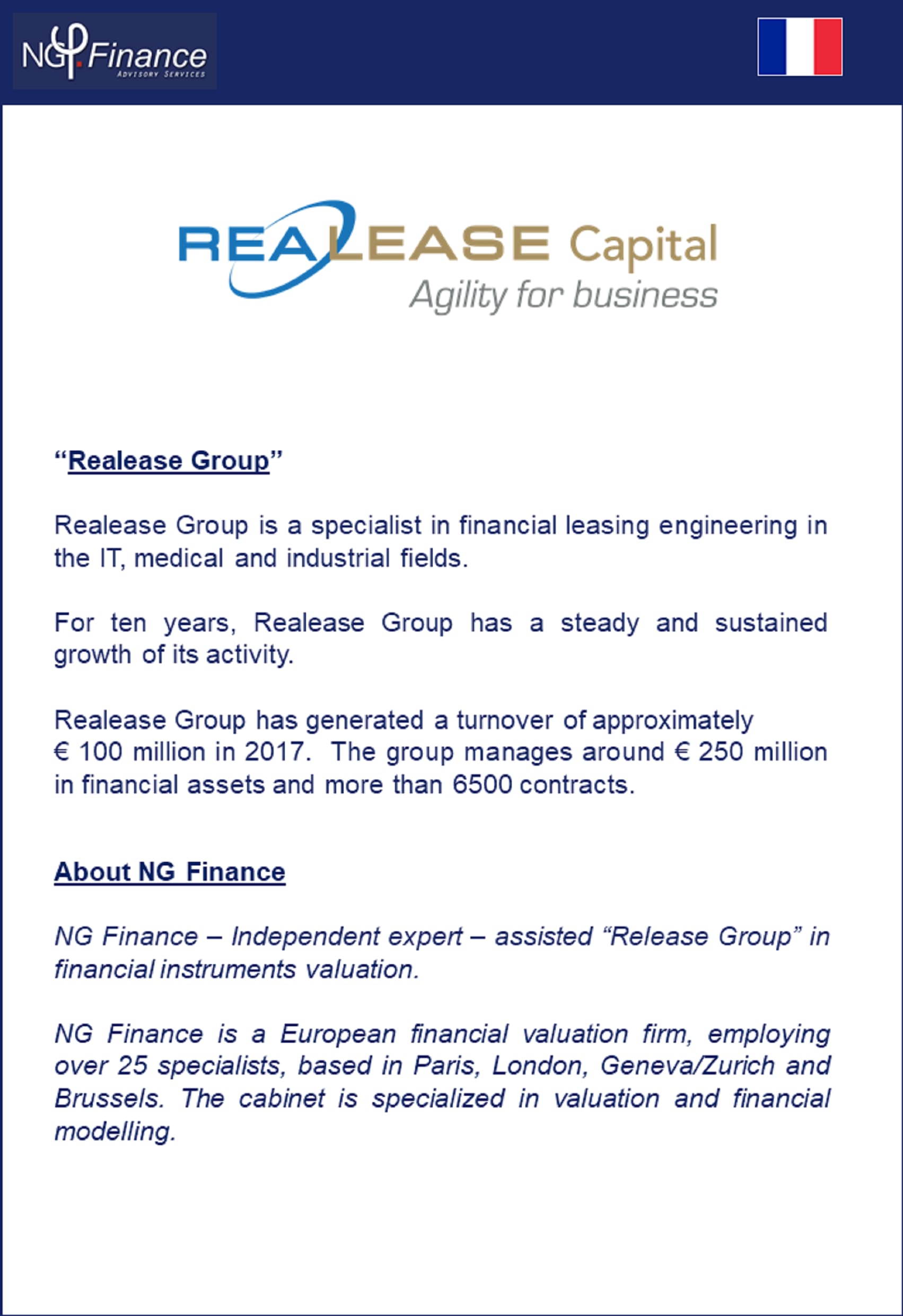 Realease Group – NG Finance a accompagné la société Realease Group dans sa valorisation d’instruments financiers