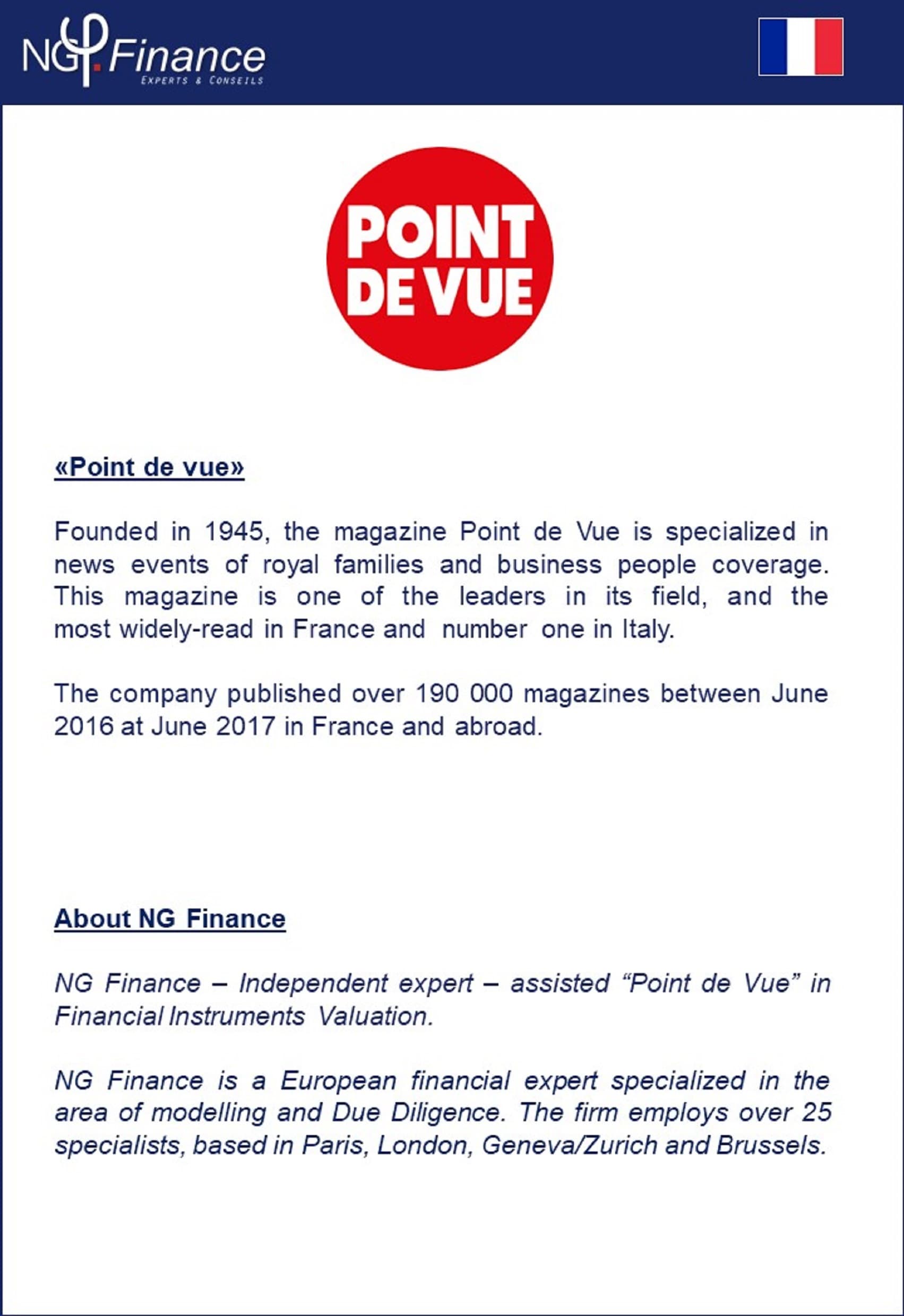 Point de Vue – NG Finance a accompagné la société Point de Vue dans sa valorisation d’instruments financiers
