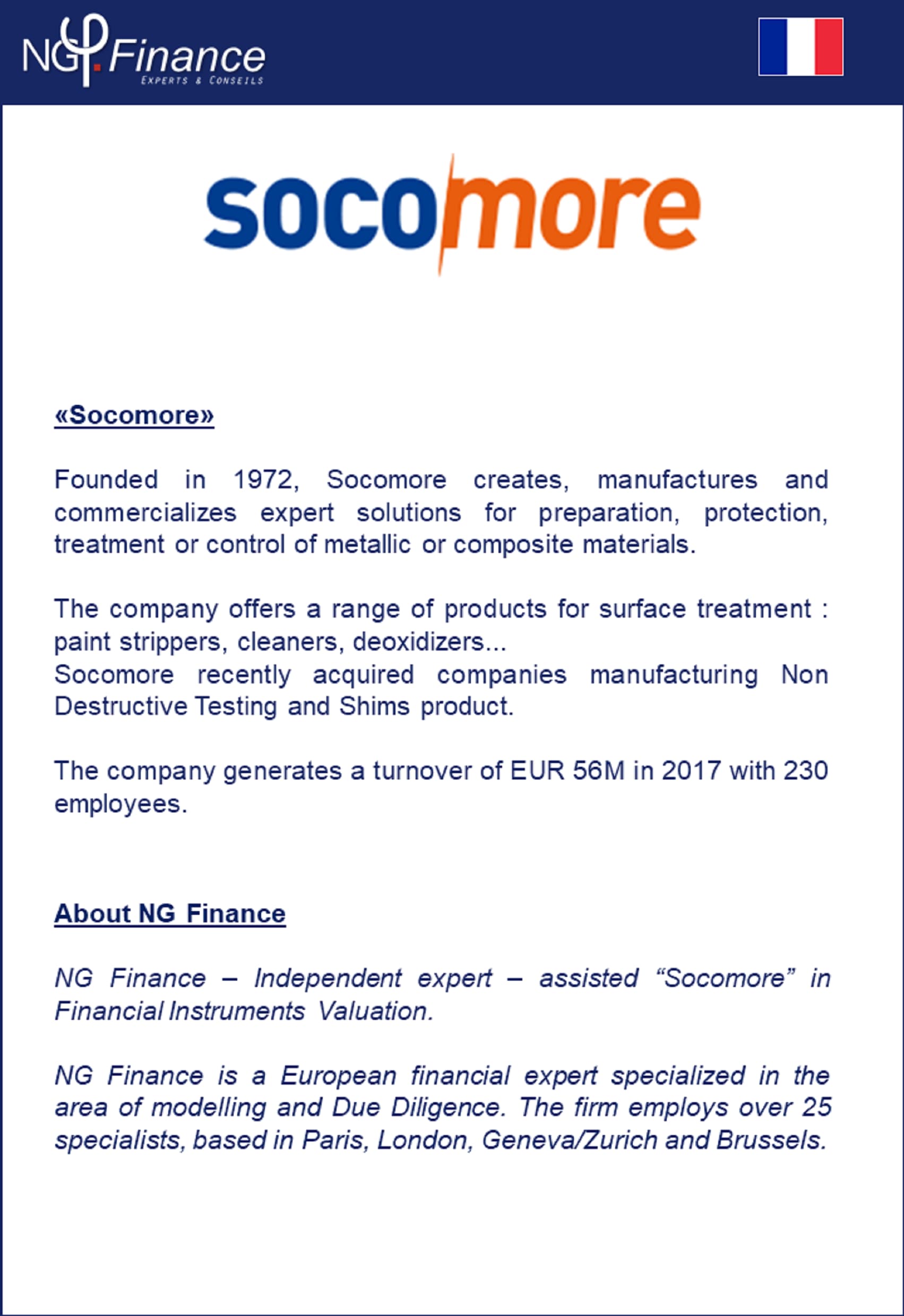 Socomore – NG Finance a accompagné la société Socomore dans sa valorisation d’instruments financiers