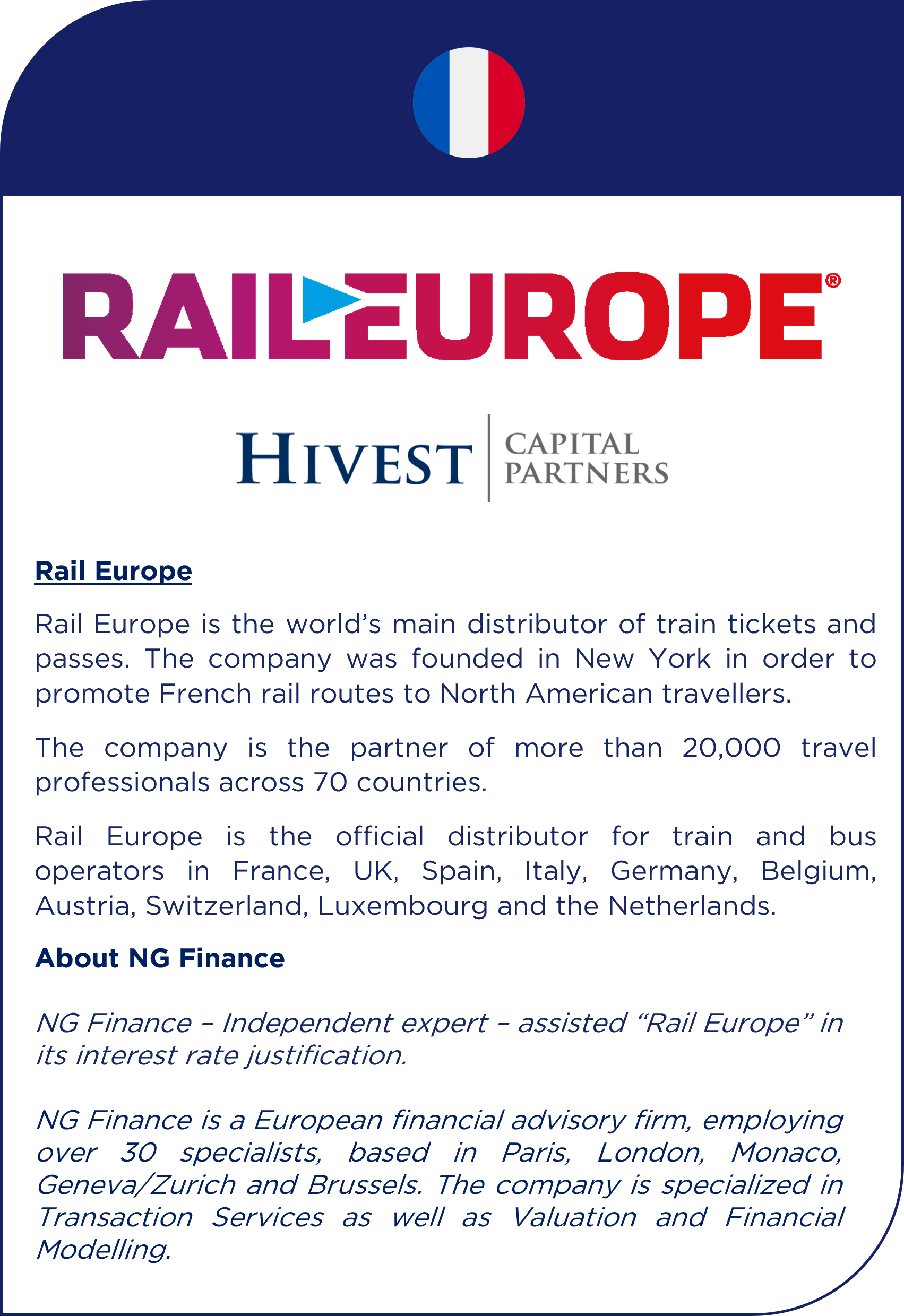 NG Finance a assisté Rail Europe dans sa justification de taux d’intérêt
